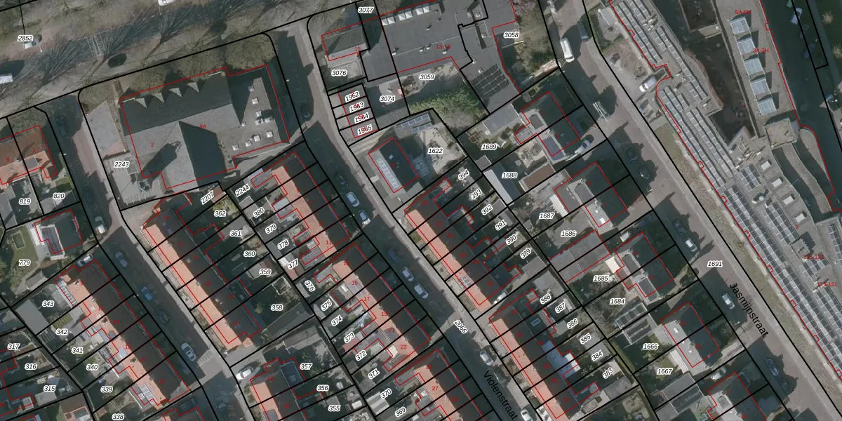 Gebruik de zoekbalk of klik op een perceel voor informatie over de adressen binnen dit perceel.
