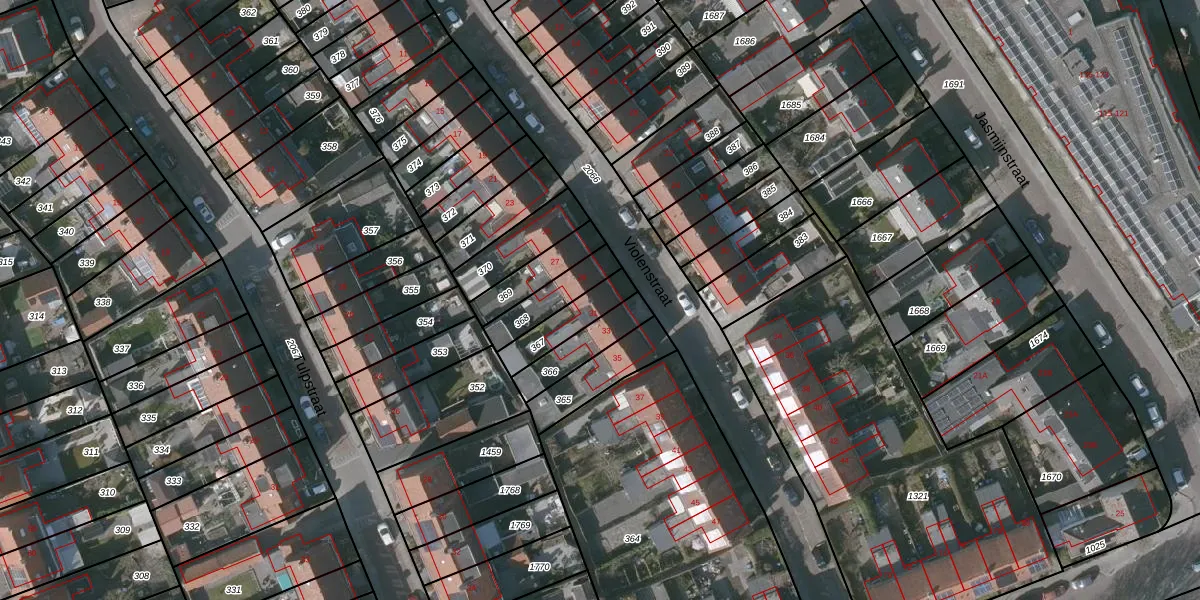 Gebruik de zoekbalk of klik op een perceel voor informatie over de adressen binnen dit perceel.