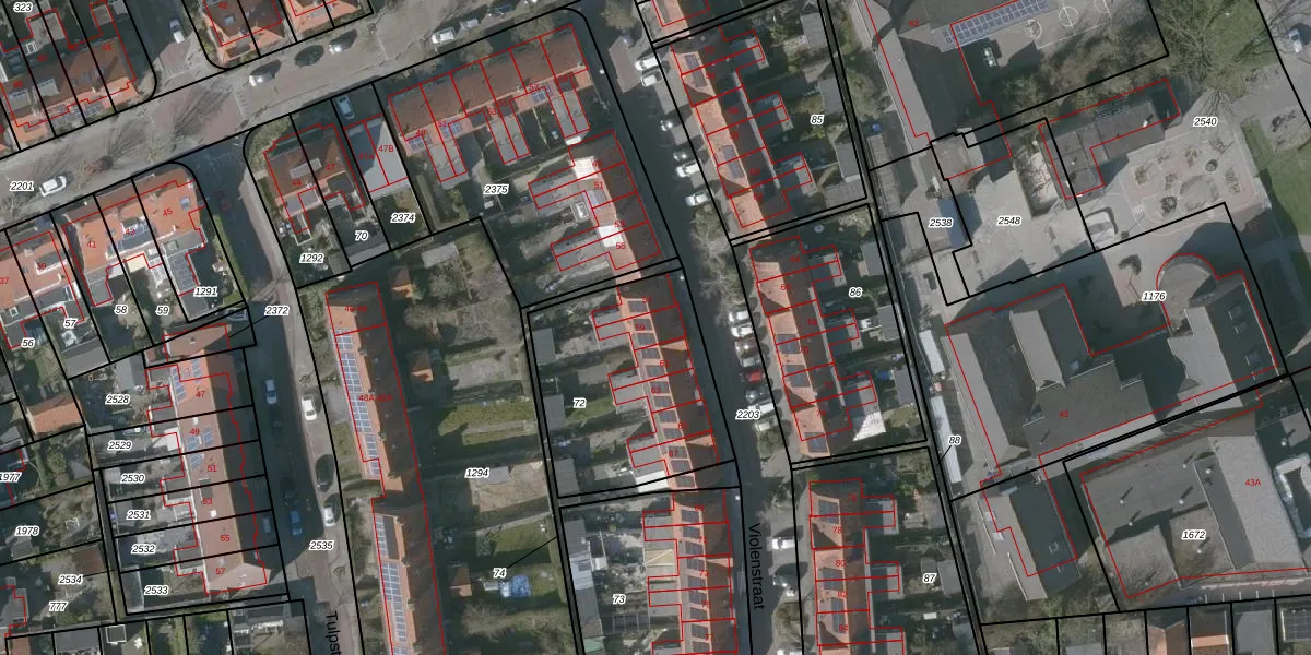 Violenstraat 59 is gelegen op kadastraal perceel GOE00F72. Deze kadastrale aanduiding is uniek en wordt gebruikt door het Kadaster om eigendomsrechten en andere zakelijke rechten vast te leggen. Het perceel maakt onderdeel uit van de kadastrale gemeente Goes.