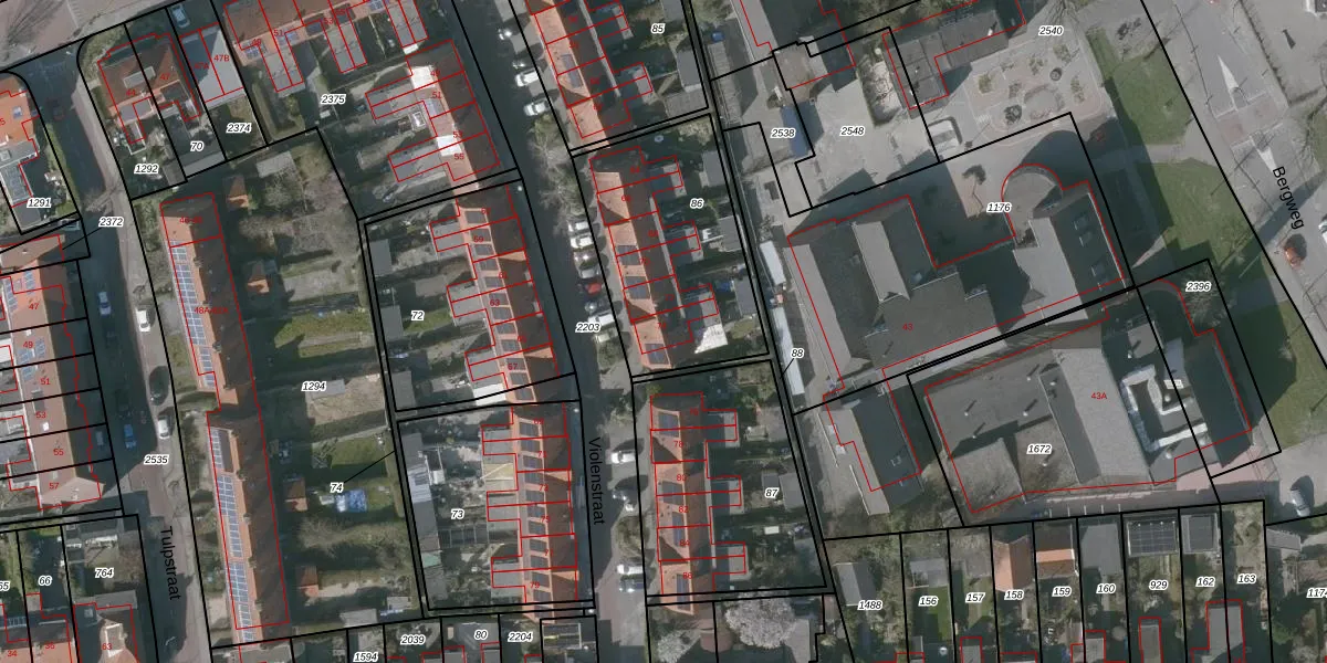 Violenstraat 74 is gelegen op kadastraal perceel GOE00F86. Deze kadastrale aanduiding is uniek en wordt gebruikt door het Kadaster om eigendomsrechten en andere zakelijke rechten vast te leggen. Het perceel maakt onderdeel uit van de kadastrale gemeente Goes.