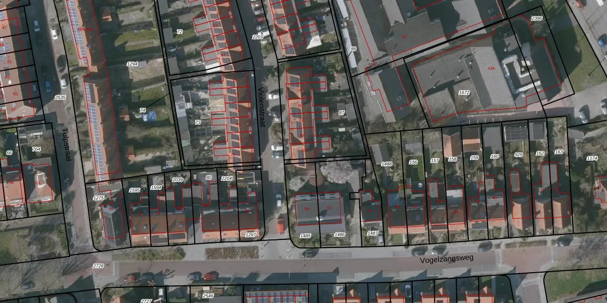 Het perceel waarop Violenstraat 86 staat heeft een oppervlakte van 820 m². Dit is een groot perceel. De perceeloppervlakte wordt geregistreerd door het Kadaster. Gedetailleerde informatie over de maten van dit perceel kunt u vinden in het rapport Kadastrale kaart met maatvoering van Violenstraat 86.