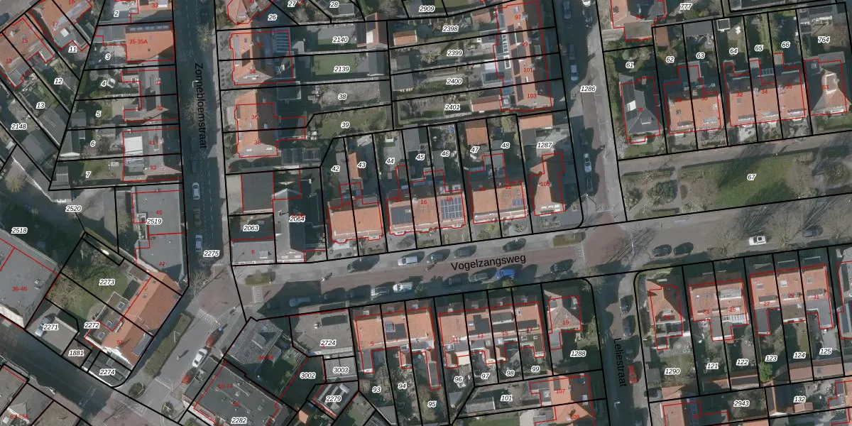 Gebruik de zoekbalk of klik op een perceel voor informatie over de adressen binnen dit perceel.
