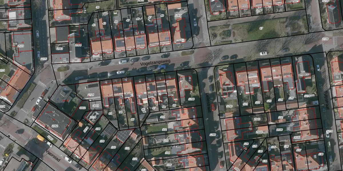 Het perceel waarop Vogelzangsweg 17 staat heeft een oppervlakte van 150 m². Dit is een middelgroot perceel. De perceeloppervlakte wordt geregistreerd door het Kadaster. Gedetailleerde informatie over de maten van dit perceel kunt u vinden in het rapport Kadastrale kaart met maatvoering van Vogelzangsweg 17.