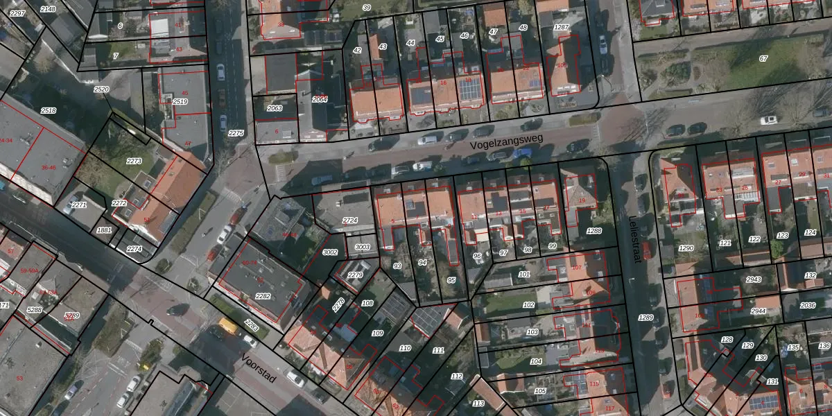 Gebruik de zoekbalk of klik op een perceel voor informatie over de adressen binnen dit perceel.