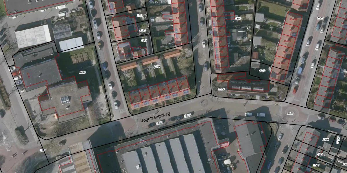 Het perceel waarop Vogelzangsweg 86 staat heeft een oppervlakte van 1324 m². Dit is een zeer groot perceel. De perceeloppervlakte wordt geregistreerd door het Kadaster. Gedetailleerde informatie over de maten van dit perceel kunt u vinden in het rapport Kadastrale kaart met maatvoering van Vogelzangsweg 86.