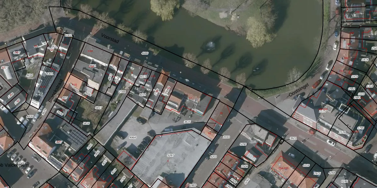 Het perceel waarop Voorstad 17 staat heeft een oppervlakte van 1321 m². Dit is een zeer groot perceel. De perceeloppervlakte wordt geregistreerd door het Kadaster. Gedetailleerde informatie over de maten van dit perceel kunt u vinden in het rapport Kadastrale kaart met maatvoering van Voorstad 17.
