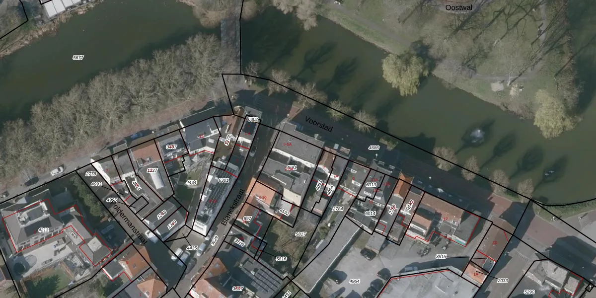 Het perceel waarop Voorstad 5 staat heeft een oppervlakte van 330 m². Dit is een groot perceel. De perceeloppervlakte wordt geregistreerd door het Kadaster. Gedetailleerde informatie over de maten van dit perceel kunt u vinden in het rapport Kadastrale kaart met maatvoering van Voorstad 5.