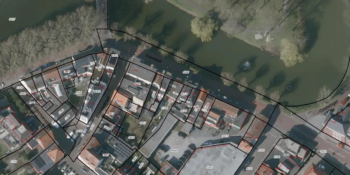 Gebruik de zoekbalk of klik op een perceel voor informatie over de adressen binnen dit perceel.
