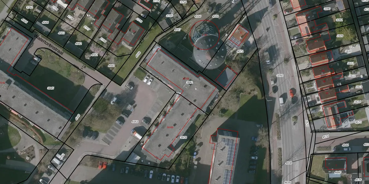 Watertorenstraat 55 is gelegen op kadastraal perceel GOE00E3842. Deze kadastrale aanduiding is uniek en wordt gebruikt door het Kadaster om eigendomsrechten en andere zakelijke rechten vast te leggen. Het perceel maakt onderdeel uit van de kadastrale gemeente Goes.