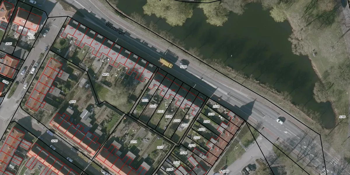 Het perceel waarop Westsingel 106 staat heeft een oppervlakte van 173 m². Dit is een middelgroot perceel. De perceeloppervlakte wordt geregistreerd door het Kadaster. Gedetailleerde informatie over de maten van dit perceel kunt u vinden in het rapport Kadastrale kaart met maatvoering van Westsingel 106.