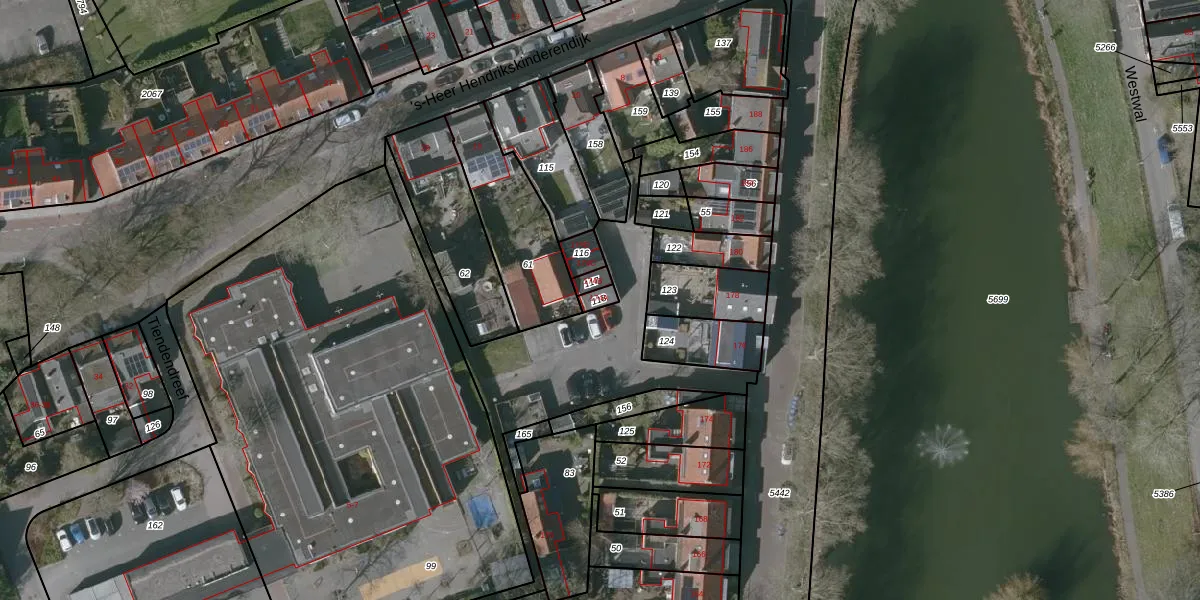 Gebruik de zoekbalk of klik op een perceel voor informatie over de adressen binnen dit perceel.