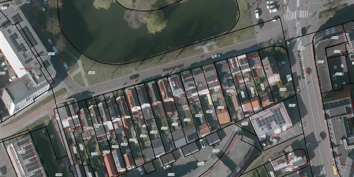 Het perceel waarop Westsingel 34 staat heeft een oppervlakte van 297 m². Dit is een middelgroot perceel. De perceeloppervlakte wordt geregistreerd door het Kadaster. Gedetailleerde informatie over de maten van dit perceel kunt u vinden in het rapport Kadastrale kaart met maatvoering van Westsingel 34.