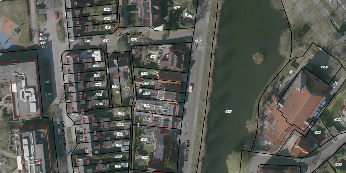 Het perceel waarop Westsingel 82 staat heeft een oppervlakte van 164 m². Dit is een middelgroot perceel. De perceeloppervlakte wordt geregistreerd door het Kadaster. Gedetailleerde informatie over de maten van dit perceel kunt u vinden in het rapport Kadastrale kaart met maatvoering van Westsingel 82.