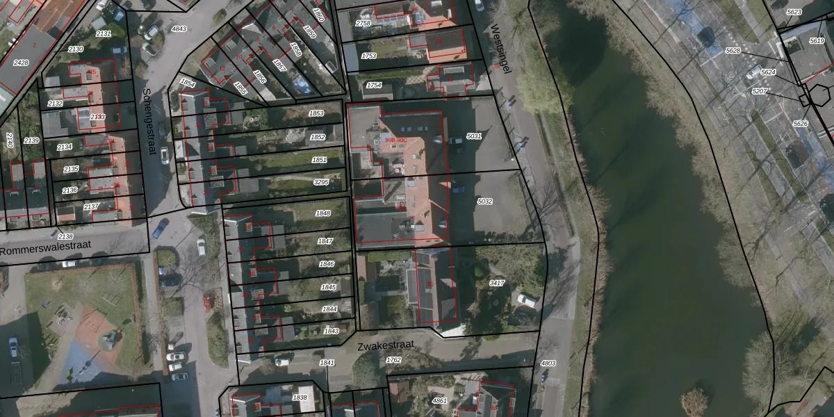 Gebruik de zoekbalk of klik op een perceel voor informatie over de adressen binnen dit perceel.