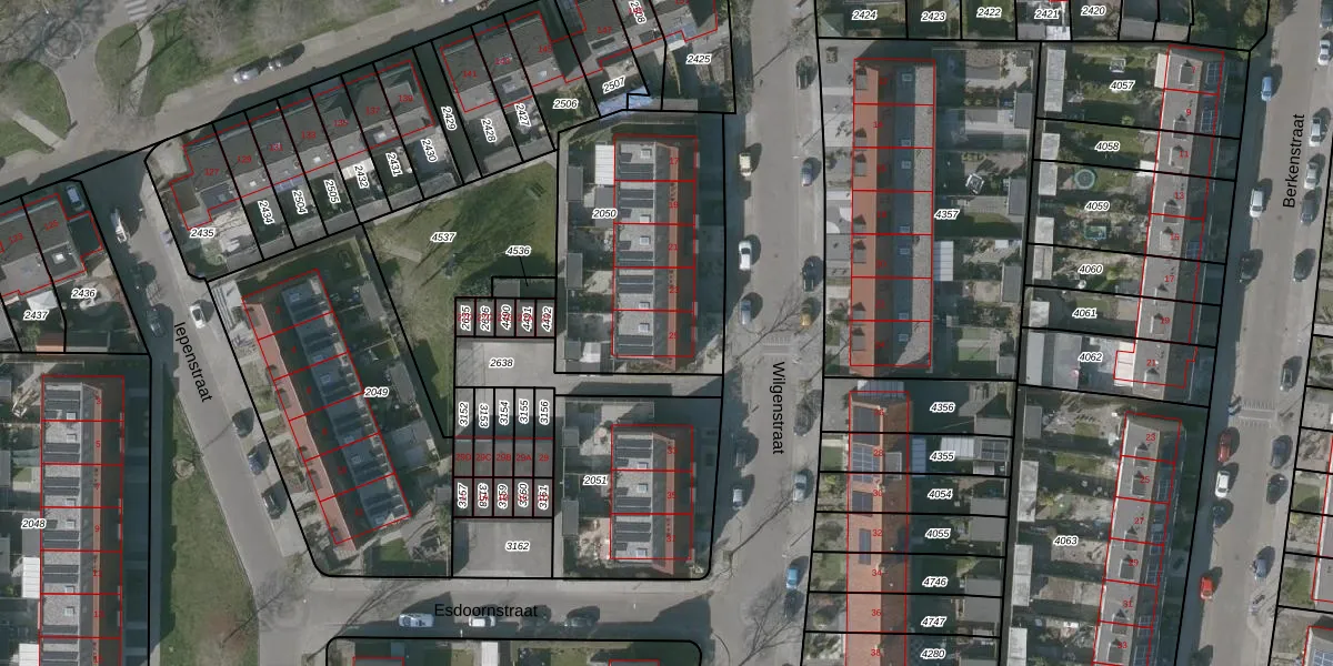 Wilgenstraat 25 is gelegen op kadastraal perceel GOE00E2050. Deze kadastrale aanduiding is uniek en wordt gebruikt door het Kadaster om eigendomsrechten en andere zakelijke rechten vast te leggen. Het perceel maakt onderdeel uit van de kadastrale gemeente Goes.