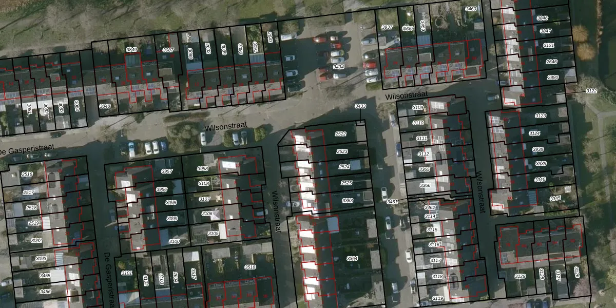 Het perceel waarop Wilsonstraat 19 staat heeft een oppervlakte van 147 m². Dit is een middelgroot perceel. De perceeloppervlakte wordt geregistreerd door het Kadaster. Gedetailleerde informatie over de maten van dit perceel kunt u vinden in het rapport Kadastrale kaart met maatvoering van Wilsonstraat 19.
