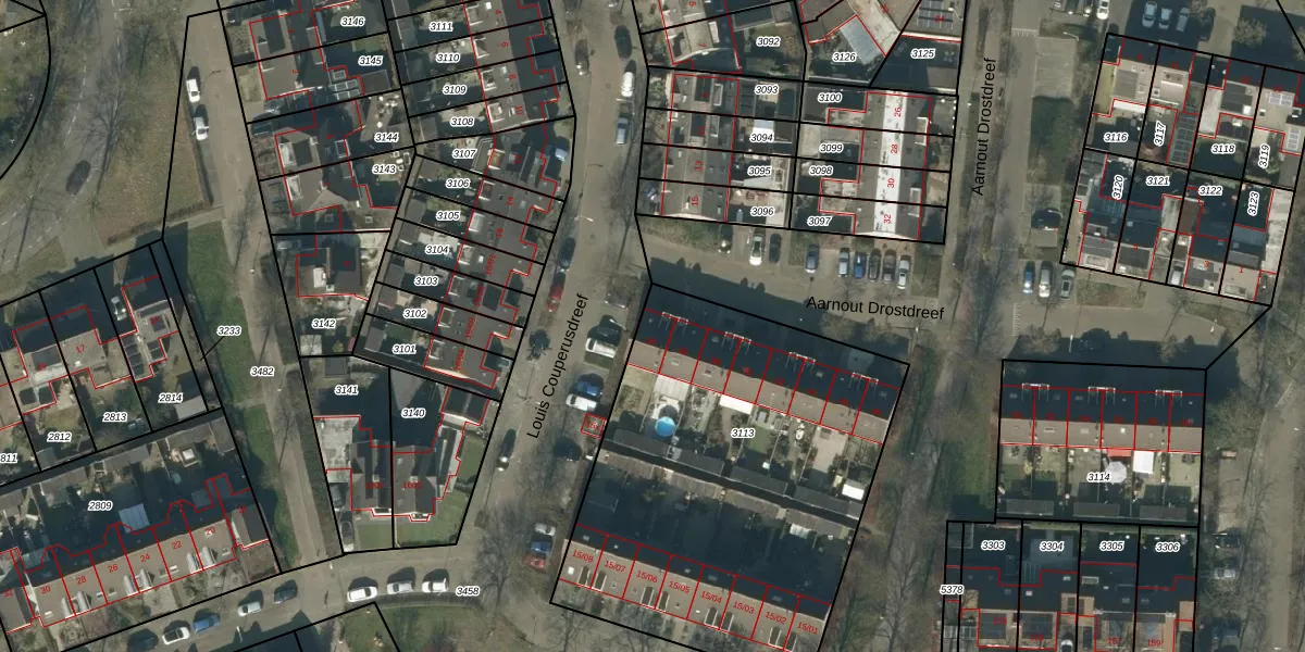 Het perceel waarop Aarnout Drostdreef 34 staat heeft een oppervlakte van 2131 m². Dit is een zeer groot perceel. De perceeloppervlakte wordt geregistreerd door het Kadaster. Gedetailleerde informatie over de maten van dit perceel kunt u vinden in het rapport Kadastrale kaart met maatvoering van Aarnout Drostdreef 34.