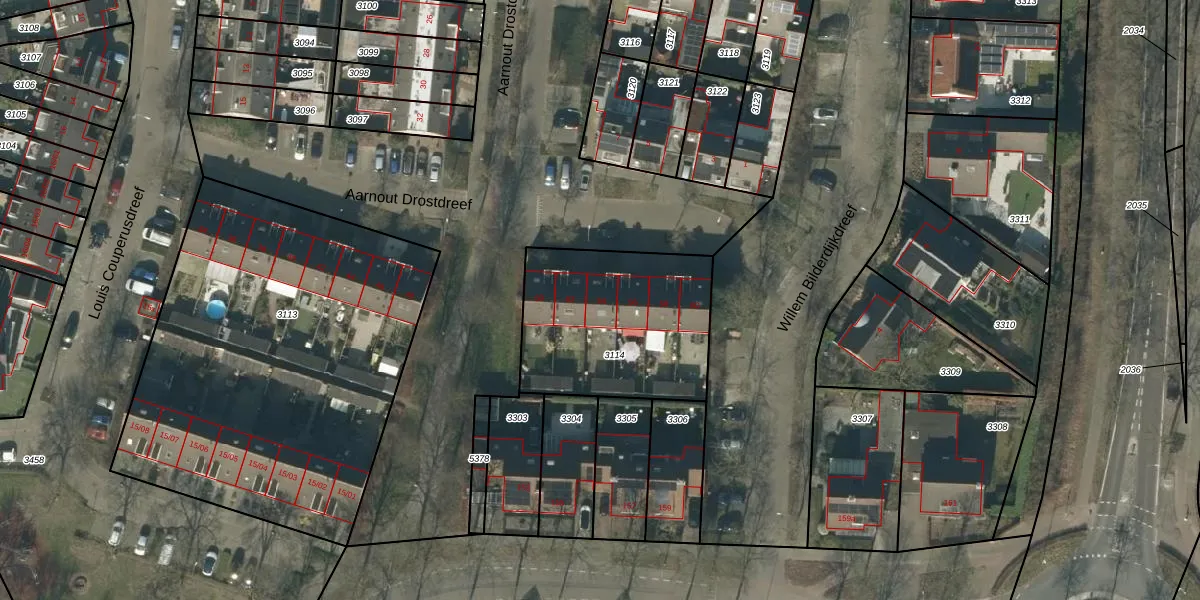 Aarnout Drostdreef 54 is gelegen op kadastraal perceel GLE01A3114. Deze kadastrale aanduiding is uniek en wordt gebruikt door het Kadaster om eigendomsrechten en andere zakelijke rechten vast te leggen. Het perceel maakt onderdeel uit van de kadastrale gemeente Goirle.