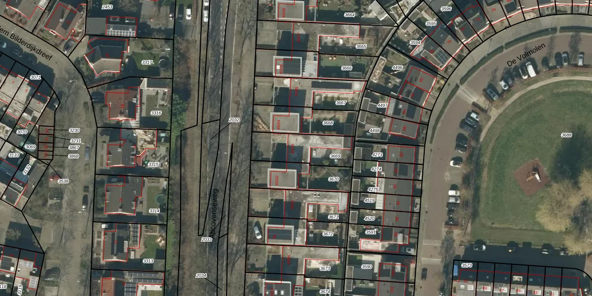 Gebruik de zoekbalk of klik op een perceel voor informatie over de adressen binnen dit perceel.