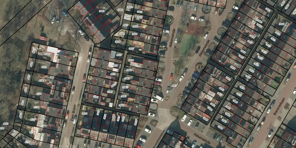 Gebruik de zoekbalk of klik op een perceel voor informatie over de adressen binnen dit perceel.