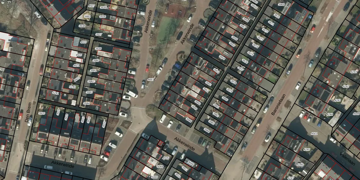 Gebruik de zoekbalk of klik op een perceel voor informatie over de adressen binnen dit perceel.