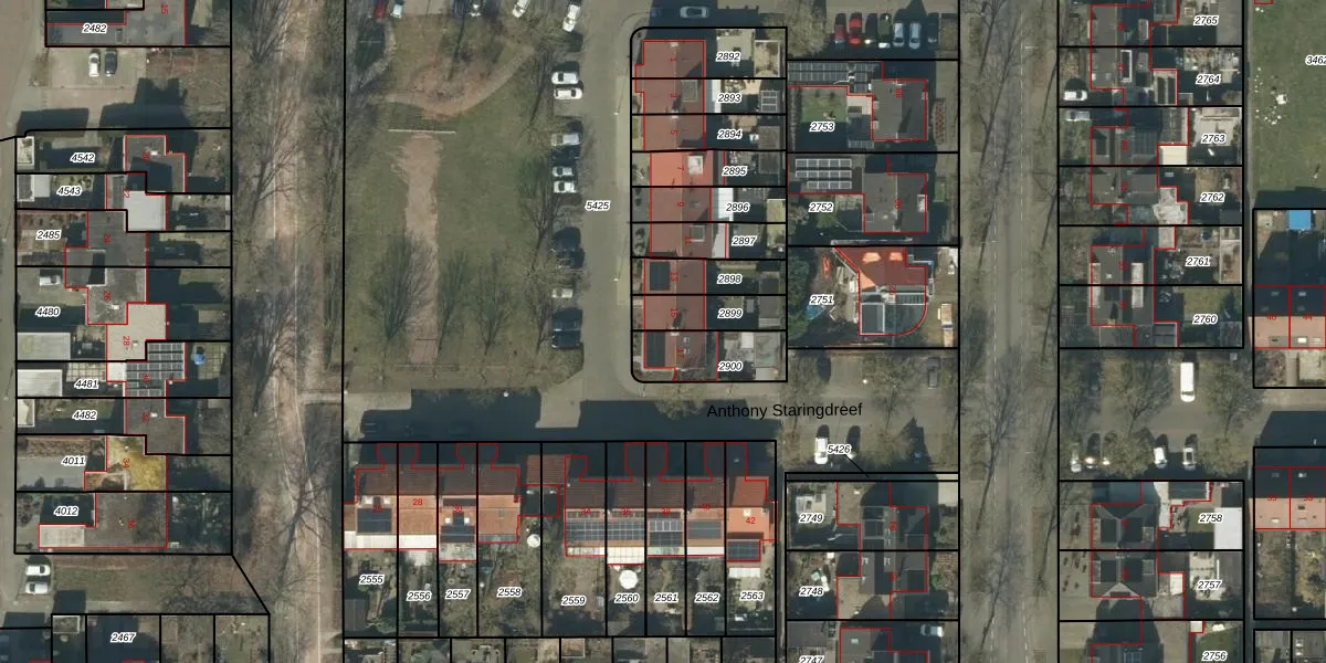 Anthony Staringdreef 17 is gelegen op kadastraal perceel GLE01A2900. Deze kadastrale aanduiding is uniek en wordt gebruikt door het Kadaster om eigendomsrechten en andere zakelijke rechten vast te leggen. Het perceel maakt onderdeel uit van de kadastrale gemeente Goirle.