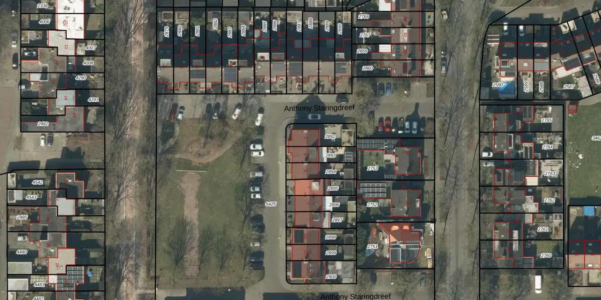 Anthony Staringdreef 3 is gelegen op kadastraal perceel GLE01A2893. Deze kadastrale aanduiding is uniek en wordt gebruikt door het Kadaster om eigendomsrechten en andere zakelijke rechten vast te leggen. Het perceel maakt onderdeel uit van de kadastrale gemeente Goirle.