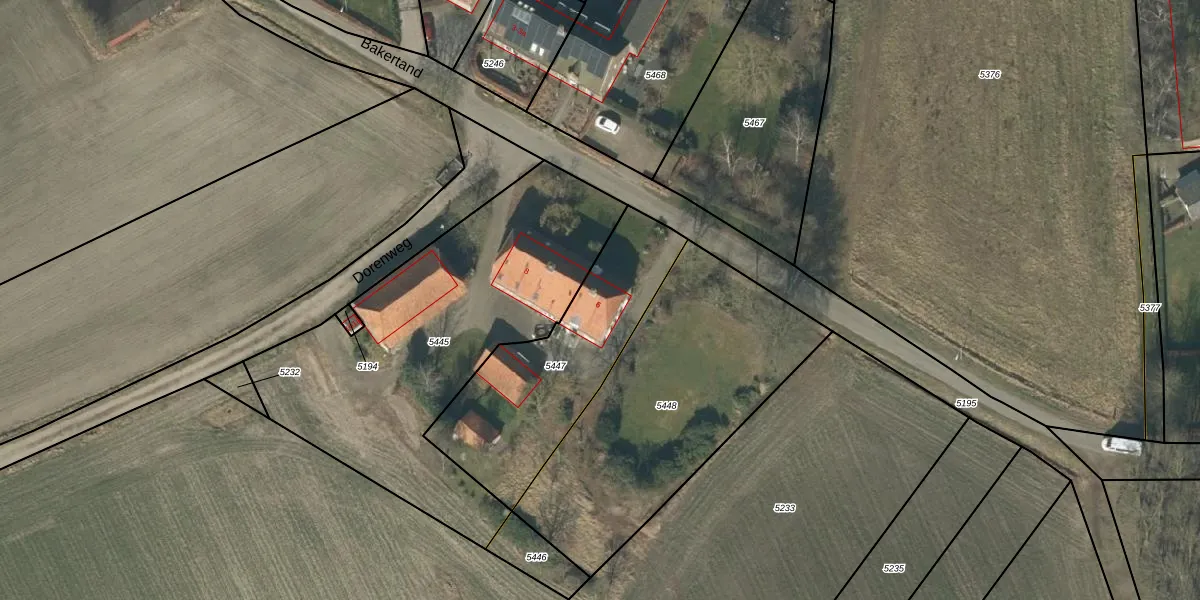 Bakertand 6 is gelegen op kadastraal perceel GLE01A5447. Deze kadastrale aanduiding is uniek en wordt gebruikt door het Kadaster om eigendomsrechten en andere zakelijke rechten vast te leggen. Het perceel maakt onderdeel uit van de kadastrale gemeente Goirle.