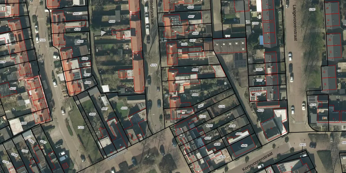 Beatrixstraat 16 is gelegen op kadastraal perceel GLE01B4488. Deze kadastrale aanduiding is uniek en wordt gebruikt door het Kadaster om eigendomsrechten en andere zakelijke rechten vast te leggen. Het perceel maakt onderdeel uit van de kadastrale gemeente Goirle.