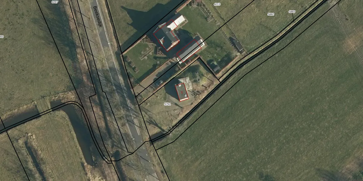 Het perceel waarop Beeksedijk 14 staat heeft een oppervlakte van 920 m². Dit is een groot perceel. De perceeloppervlakte wordt geregistreerd door het Kadaster. Gedetailleerde informatie over de maten van dit perceel kunt u vinden in het rapport Kadastrale kaart met maatvoering van Beeksedijk 14.