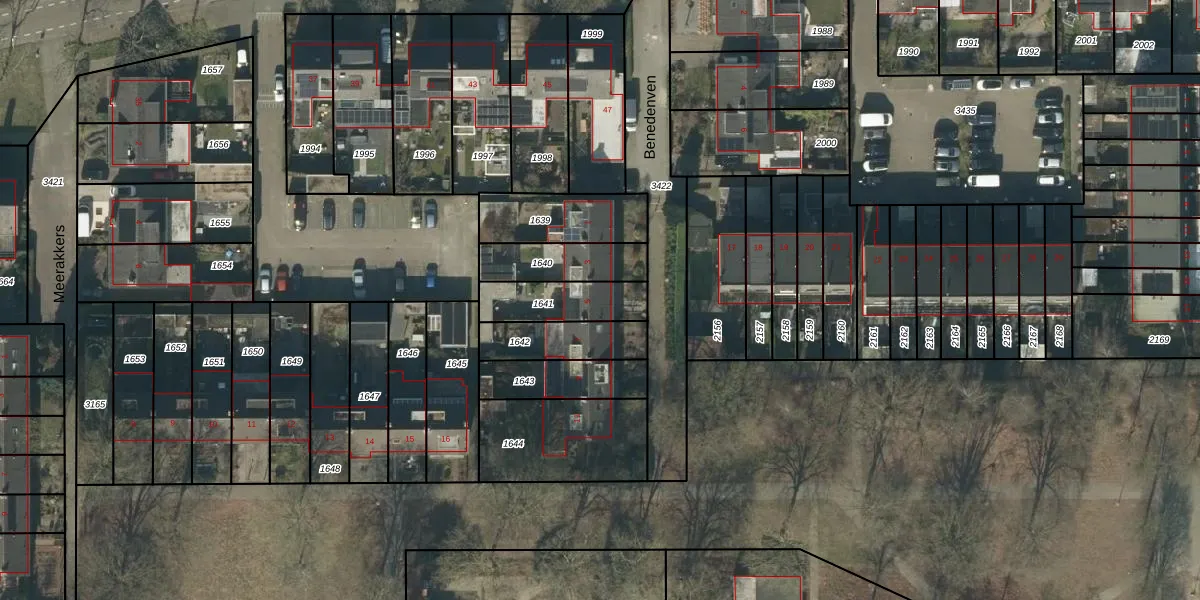 Gebruik de zoekbalk of klik op een perceel voor informatie over de adressen binnen dit perceel.