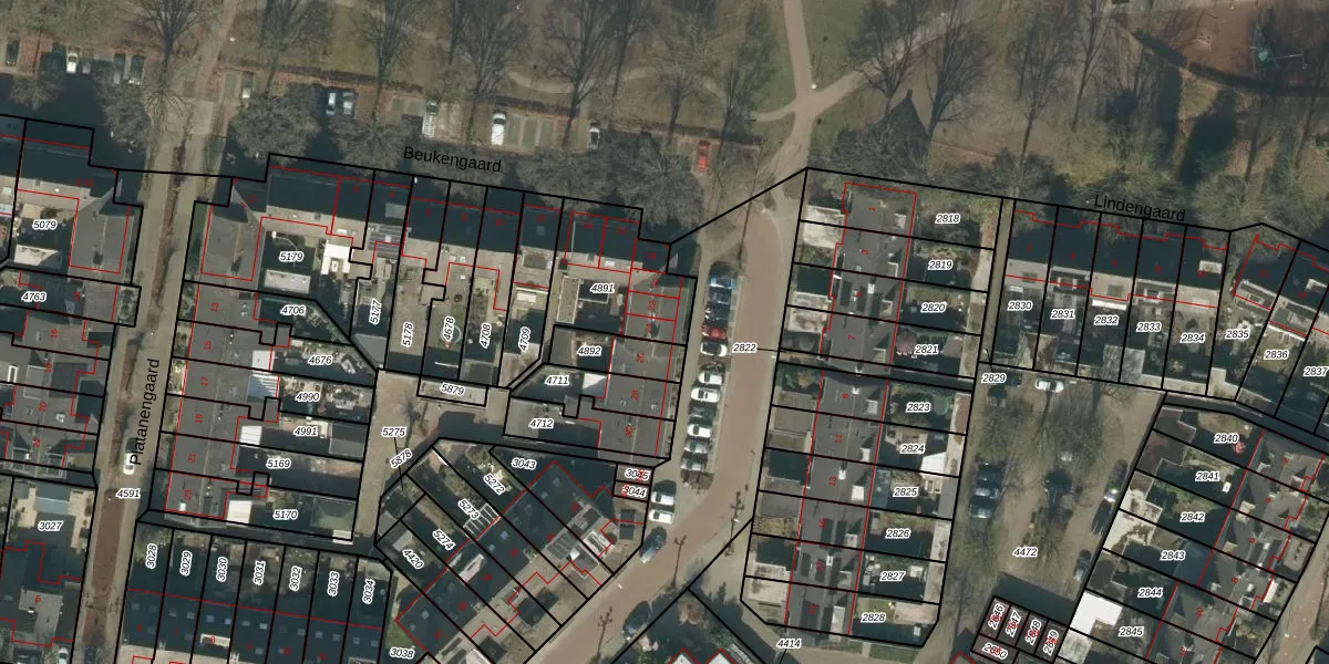 Het perceel waarop Beukengaard 24 staat heeft een oppervlakte van 369 m². Dit is een groot perceel. De perceeloppervlakte wordt geregistreerd door het Kadaster. Gedetailleerde informatie over de maten van dit perceel kunt u vinden in het rapport Kadastrale kaart met maatvoering van Beukengaard 24.