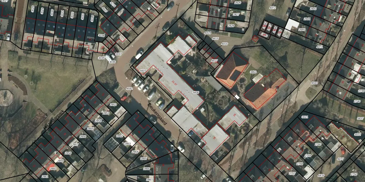 Beukengaard 33 is gelegen op kadastraal perceel GLE01E5606. Deze kadastrale aanduiding is uniek en wordt gebruikt door het Kadaster om eigendomsrechten en andere zakelijke rechten vast te leggen. Het perceel maakt onderdeel uit van de kadastrale gemeente Goirle.