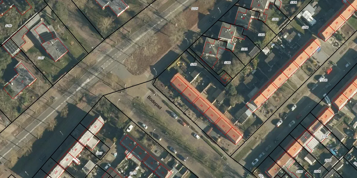 Het perceel waarop Bodepad 14 staat heeft een oppervlakte van 4573 m². Dit is een zeer groot perceel. De perceeloppervlakte wordt geregistreerd door het Kadaster. Gedetailleerde informatie over de maten van dit perceel kunt u vinden in het rapport Kadastrale kaart met maatvoering van Bodepad 14.