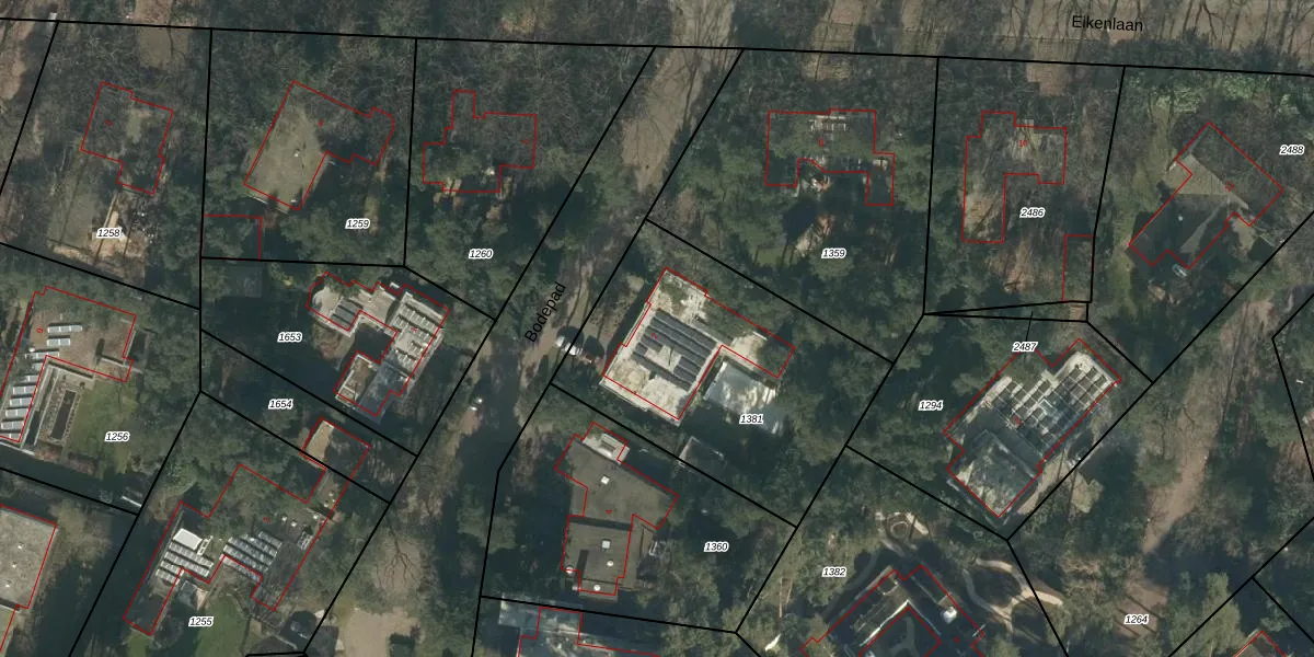 Het perceel waarop Bodepad 2 staat heeft een oppervlakte van 1277 m². Dit is een zeer groot perceel. De perceeloppervlakte wordt geregistreerd door het Kadaster. Gedetailleerde informatie over de maten van dit perceel kunt u vinden in het rapport Kadastrale kaart met maatvoering van Bodepad 2.