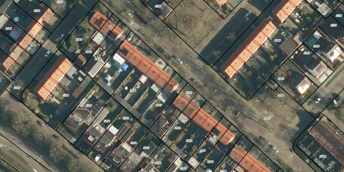 Het perceel waarop Bodepad 53 staat heeft een oppervlakte van 305 m². Dit is een groot perceel. De perceeloppervlakte wordt geregistreerd door het Kadaster. Gedetailleerde informatie over de maten van dit perceel kunt u vinden in het rapport Kadastrale kaart met maatvoering van Bodepad 53.