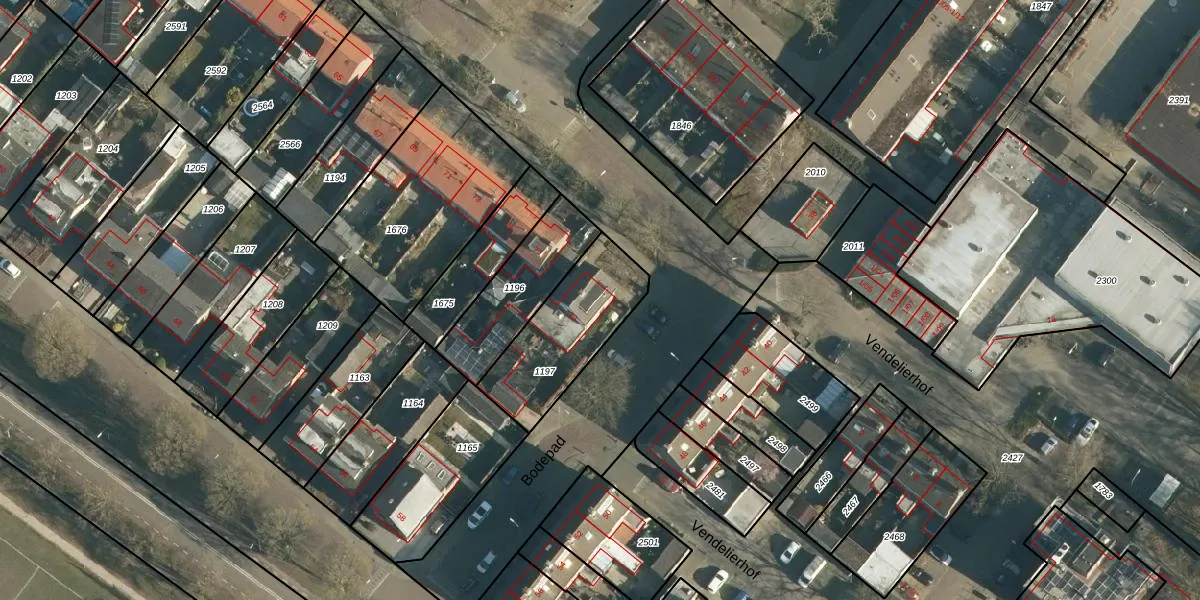 Gebruik de zoekbalk of klik op een perceel voor informatie over de adressen binnen dit perceel.