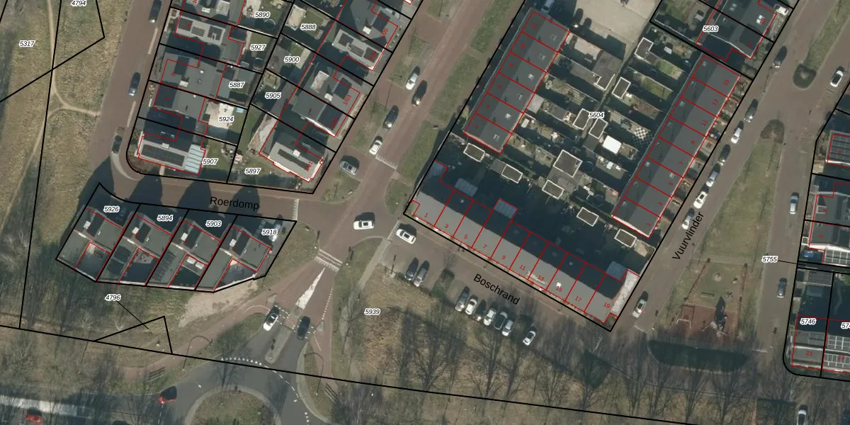 Het perceel waarop Boschrand 1 staat heeft een oppervlakte van 4905 m². Dit is een zeer groot perceel. De perceeloppervlakte wordt geregistreerd door het Kadaster. Gedetailleerde informatie over de maten van dit perceel kunt u vinden in het rapport Kadastrale kaart met maatvoering van Boschrand 1.