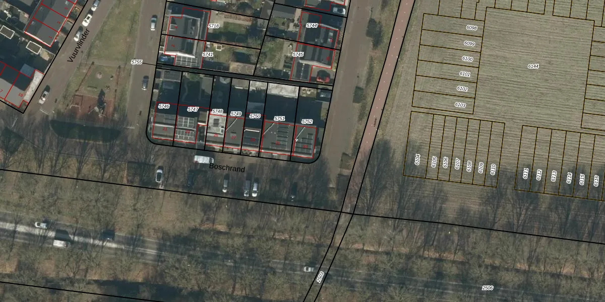 Boschrand 33 is gelegen op kadastraal perceel GLE01E5752. Deze kadastrale aanduiding is uniek en wordt gebruikt door het Kadaster om eigendomsrechten en andere zakelijke rechten vast te leggen. Het perceel maakt onderdeel uit van de kadastrale gemeente Goirle.