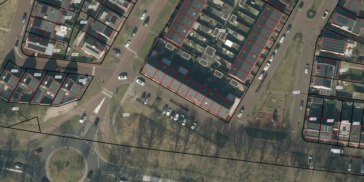 Boschrand 9 is gelegen op kadastraal perceel GLE01E5604. Deze kadastrale aanduiding is uniek en wordt gebruikt door het Kadaster om eigendomsrechten en andere zakelijke rechten vast te leggen. Het perceel maakt onderdeel uit van de kadastrale gemeente Goirle.
