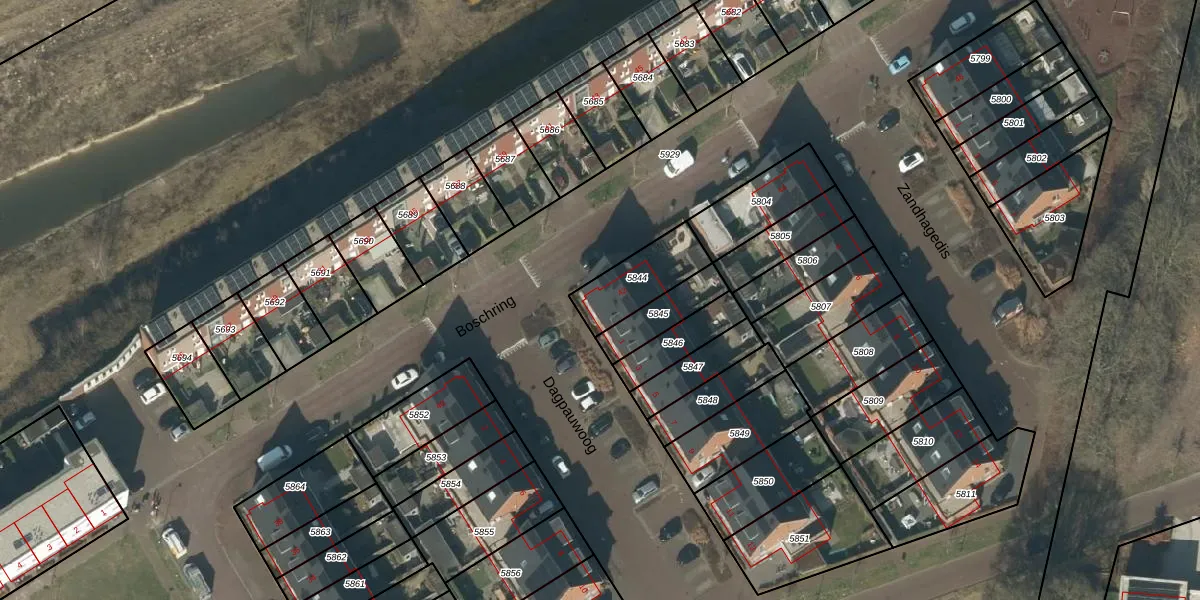 Gebruik de zoekbalk of klik op een perceel voor informatie over de adressen binnen dit perceel.