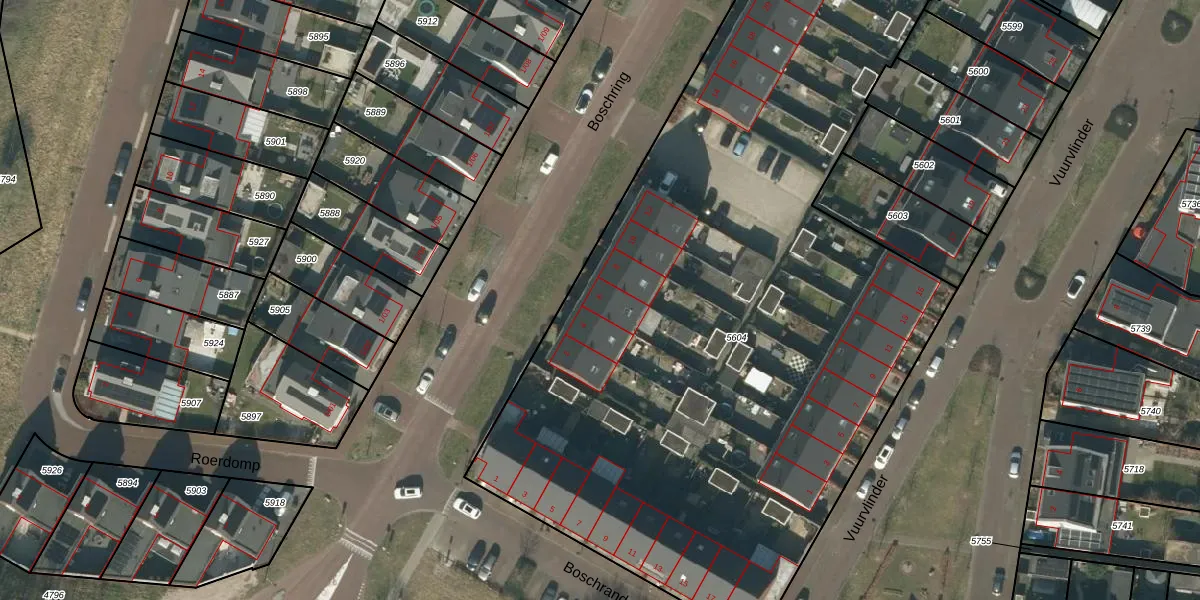Boschring 6 is gelegen op kadastraal perceel GLE01E5604. Deze kadastrale aanduiding is uniek en wordt gebruikt door het Kadaster om eigendomsrechten en andere zakelijke rechten vast te leggen. Het perceel maakt onderdeel uit van de kadastrale gemeente Goirle.