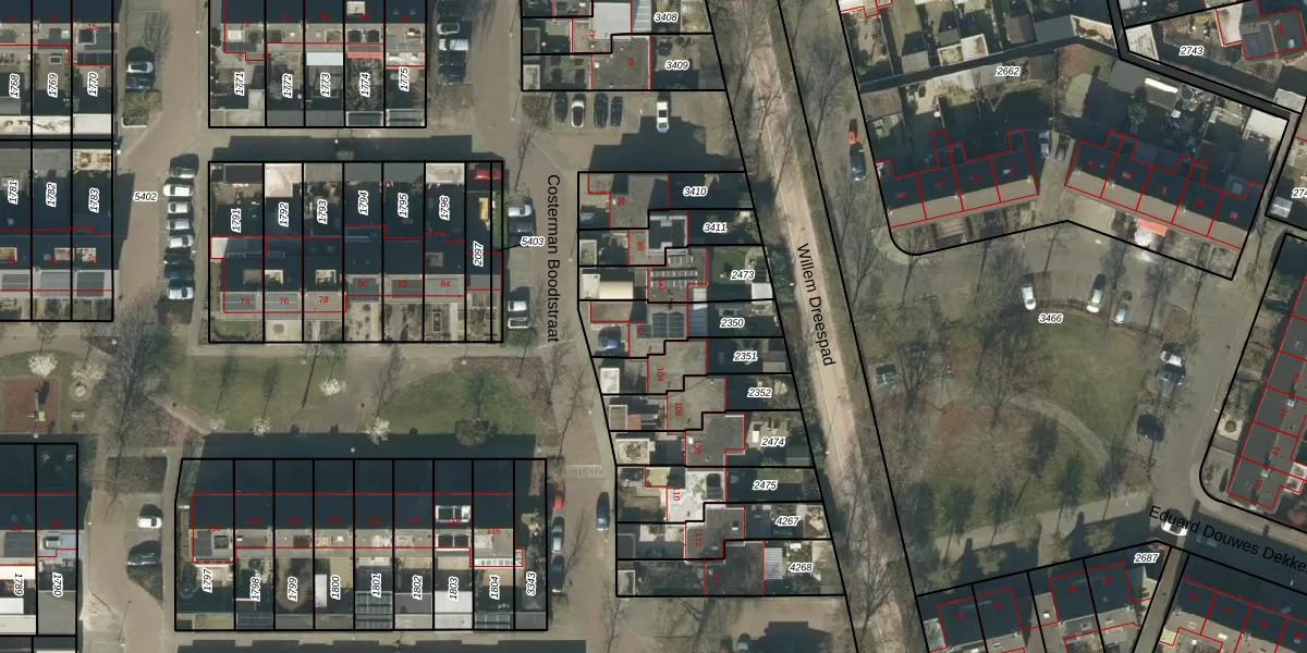 Het perceel waarop Costerman Boodtstraat 102 staat heeft een oppervlakte van 203 m². Dit is een middelgroot perceel. De perceeloppervlakte wordt geregistreerd door het Kadaster. Gedetailleerde informatie over de maten van dit perceel kunt u vinden in het rapport Kadastrale kaart met maatvoering van Costerman Boodtstraat 102.