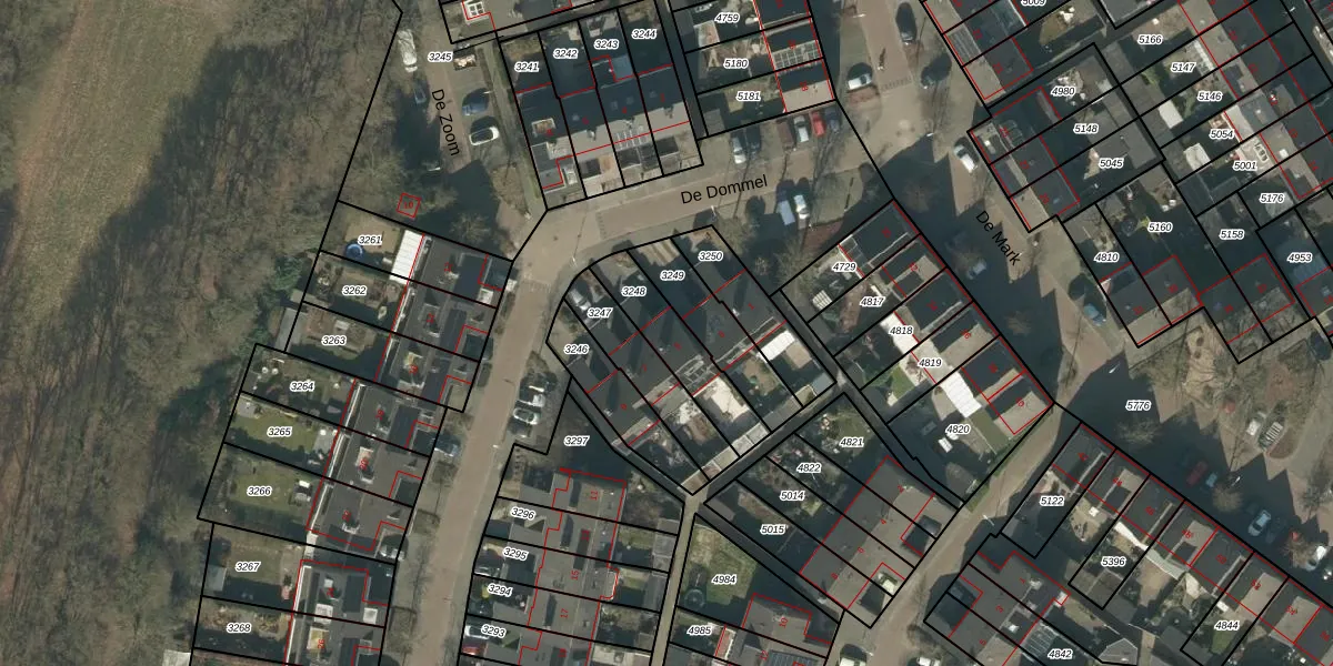 Gebruik de zoekbalk of klik op een perceel voor informatie over de adressen binnen dit perceel.
