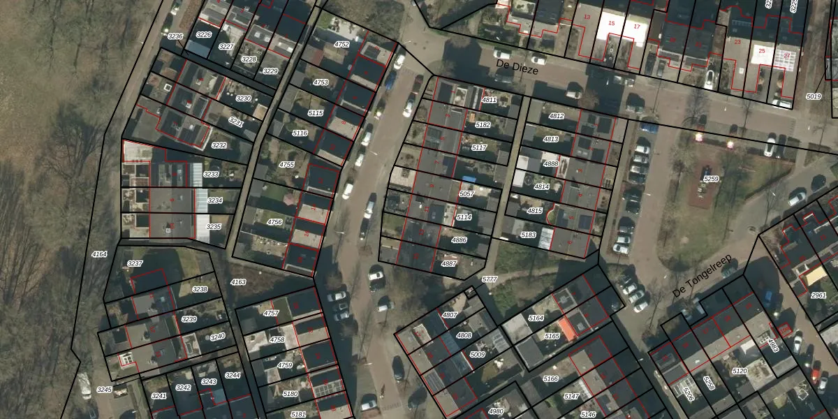 Gebruik de zoekbalk of klik op een perceel voor informatie over de adressen binnen dit perceel.