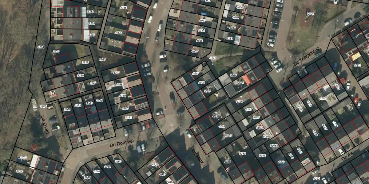 Het perceel waarop De Mark 19 staat heeft een oppervlakte van 126 m². Dit is een middelgroot perceel. De perceeloppervlakte wordt geregistreerd door het Kadaster. Gedetailleerde informatie over de maten van dit perceel kunt u vinden in het rapport Kadastrale kaart met maatvoering van De Mark 19.