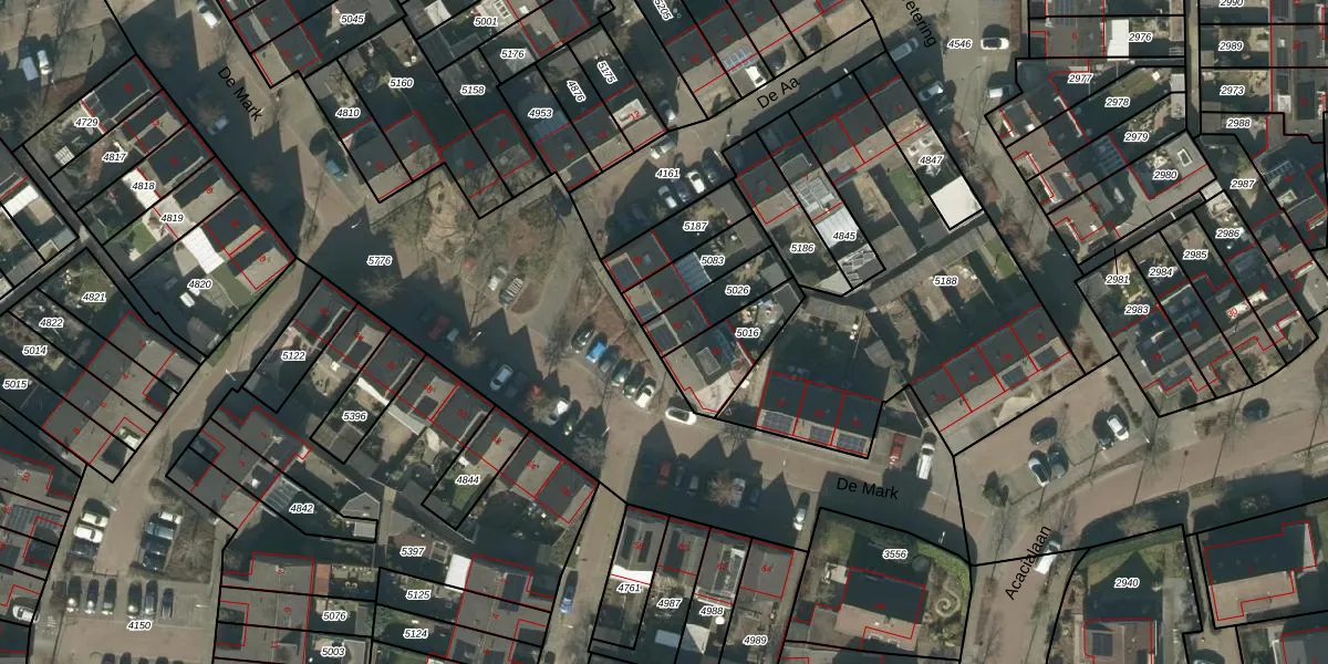 Gebruik de zoekbalk of klik op een perceel voor informatie over de adressen binnen dit perceel.