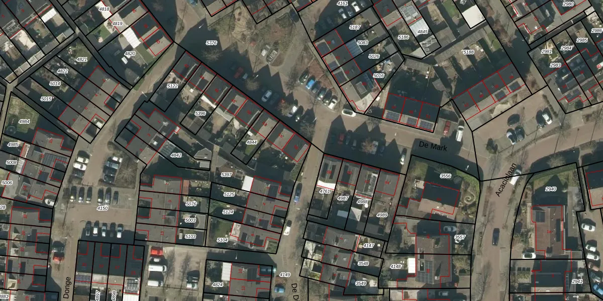 Het perceel waarop De Mark 56 staat heeft een oppervlakte van 1390 m². Dit is een zeer groot perceel. De perceeloppervlakte wordt geregistreerd door het Kadaster. Gedetailleerde informatie over de maten van dit perceel kunt u vinden in het rapport Kadastrale kaart met maatvoering van De Mark 56.