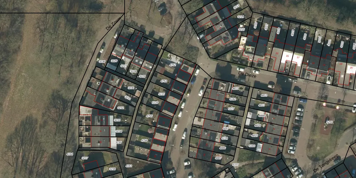 Gebruik de zoekbalk of klik op een perceel voor informatie over de adressen binnen dit perceel.