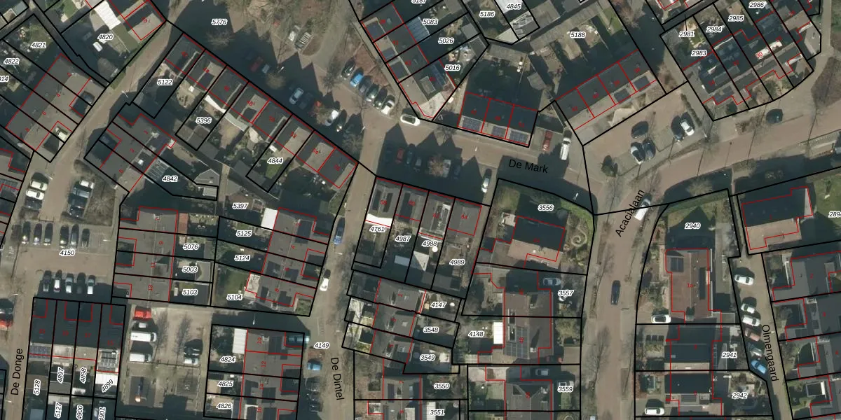 Het perceel waarop De Mark 60 staat heeft een oppervlakte van 163 m². Dit is een middelgroot perceel. De perceeloppervlakte wordt geregistreerd door het Kadaster. Gedetailleerde informatie over de maten van dit perceel kunt u vinden in het rapport Kadastrale kaart met maatvoering van De Mark 60.